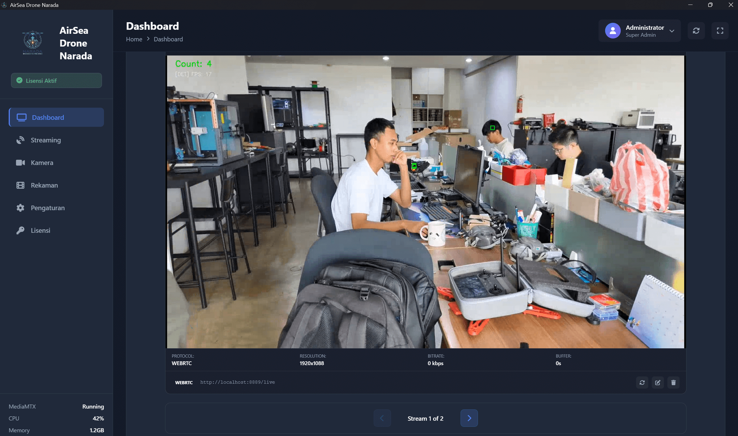 Airsea Pelago Nusantara develops Drone IoT systems built for wide-area monitoring missions where connectivity cannot depend on internet or cellular networks. The platform combines stable flight control with mesh-based IoT communication to keep the drone detectable, connected, and operationally visible through the ground station and web dashboard.